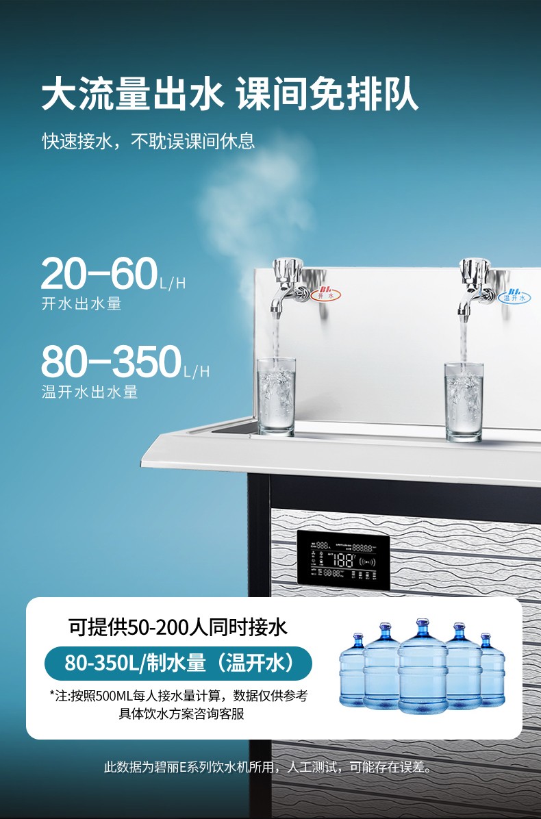 • 供 水 量:開水60升/時(shí),溫開水350升/時(shí)